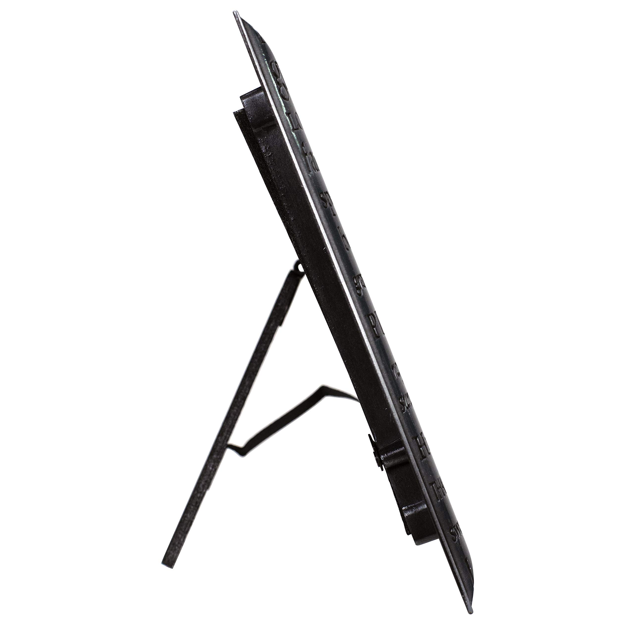 - PREMIUM QUALITY MATERIALS: This photo frame is constructed of dimensional Pewter Finish Diecast Metal. Freestanding, easel backed picture frame. Change photos easily with swing tab closures. Attached hardware makes wall hanging easy. Durable glass front will protect and showcase your precious photos